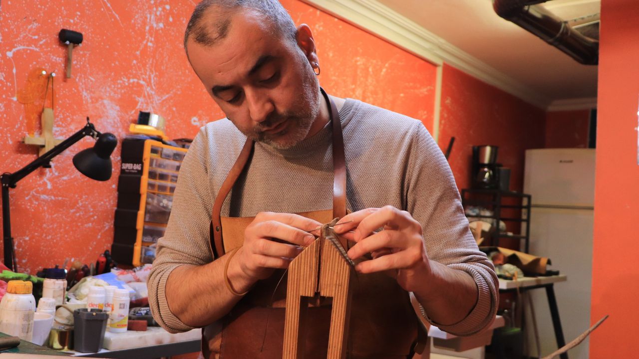 Eskişehir'de 40 yaşındaki deri ustası Metin Taşkıran, yaklaşık 10 yıl önce hobi olarak başladığı deri işini profesyonel bir kariyere dönüştürdü. İstanbul'da lojistik sektöründe uzun yıllar görev yapan 40 yaşındaki Usta, kurumsal kariyerini geride bırakarak tamamen farklı bir yola adım attı. Derilerden çanta, cüzdan ve saat kayışı gibi özgün ürünler üreten Taşkıran, el emeği ile sıfırdan bir ürünü ortaya çıkarmanın verdiği hazzı atölyesinde bularak, burayı bir iş yerinden çok, huzur dolu bir üretim alanı olarak görüyor. Usta, tasarımlarında kişisel ruh halini yansıtan asimetrik ve özgün yaklaşımları benimsiyor.