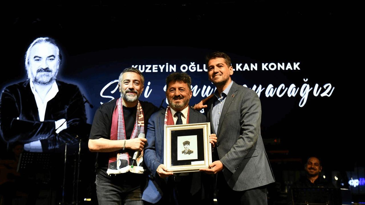Geride bıraktığımız Mart ayında sahnede geçirdiği kalp krizi sebebiyle hayata veda eden Kuzeyin Oğlu Volkan Konak, Balıkesir’de iki gün süren muhteşem konserlerle anıldı. Konakoğlu Ailesinin organizasyonunda, Balıkesir Büyükşehir Belediyesinin destekleriyle Avlu havuz başında gerçekleşen konserlerin; ilk gününde Karadeniz müziğinin güçlü ve özgün sesi Resul Dindar, ikinci gününde ise sesi ve kemençe performansıyla öne çıkan genç sanatçı Ekin Uzunlar çok sevdikleri Volkan Konak’ı sahnede onun birbirinden güzel şarkılarını seslendirerek andı. Sanatçılara sahnede; genç şarkıcı Reyhan Taghan ile aynı zamanda Volkan Konak’ın kuzeni de olan Okan Kaya, şarkılarıyla eşlik etti. İki gün boyunca on binlerce Balıkesirli, havaların soğumasına rağmen konser alanını doldurarak şarkıları hep bir ağızdan söyledi. Kuzeyin Oğlu olarak tüm Türkiye’nin kalbinde taht kuran ve ünü ülke sınırları dışına taşan Volkan Konak, sadece şarkılarıyla değil; vatan sevdası, Atatürkçü duruşu ve yardımseverliğiyle de örnek bir sanatçı olarak şarkılarıyla yaşayacak. İlki Balıkesir’de gerçekleştirilen konserler, Türkiye’nin dört bir yanında Volkan Konak hayranlarıyla buluşacak.