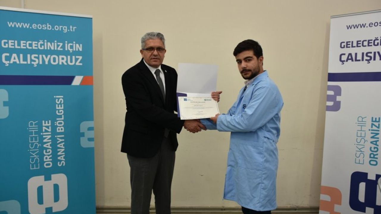 Sertifika almaya hak kazanan kursiyerlere sertifikalarını; EOSB Yönetim Kurulu Başkanı Nadir Küpeli, Başkan Vekili Metin Saraç, Yönetim Kurulu Üyesi Yavuz Ayva, EOSB Müdürü Erhan Tatar ile Danışman ve MEGEM Genel Müdür Vekili Yunus Emre Heper verdi. Sertifika almaya hak kazanan kursiyerleri tebrik eden Yönetim Kurulu Başkanı Küpeli “Bizler ürettiğimiz sürece refah seviyesine ulaşacağız. Buradaki ana görevlerden bir tanesi de sizlere düşüyor. Hepinizi tebrik ederim. Bundan önceki programların çıktılarını almaya başladık. Sizlerin CV’lerini WEB sayfamızda yayınlıyoruz ve dönüşler alıyoruz. EOSB Yönetim Kurulu olarak ülkemize hizmet etmek için elimizden geleni yapmaya hazırız. MEGEM kurslarını sonuna kadar destekliyoruz” dedi. Başkan Vekili Metin Saraç, OSB’nin görevleri arasında sanayiciye hizmet etmenin yanı sıra topluma hizmetinde yer aldığını ifade ederek “Bu kurslar topluma hizmetin sanayiye yansıması. Şu anda Türkiye’nin en büyük sıkıntısı teknik eleman eksikliği. Siz bu kurslara katılarak doğru bir yol çizdiniz. Hepinizi tebrik ediyorum” dedi. Sertifika almaya hak kazanan kursiyerleri yeni bir sürecin beklediğini belirten Yönetim Kurulu Üyesi Yavuz Ayva ise “Fedakarlık yaparak buraya geldiniz ve başarılı oldunuz. Artık sanayide üretime katkı sağlayacaksınız ve bunun faydalarını göreceksiniz” diye konuştu.