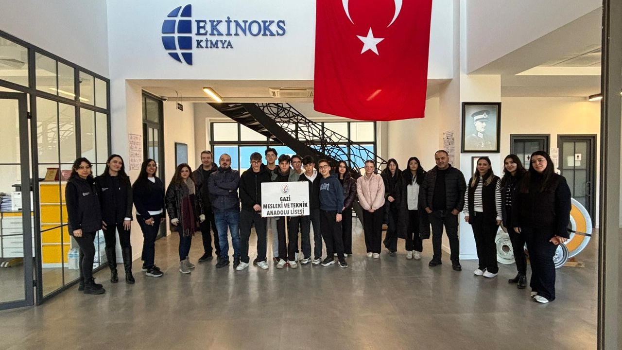 Gazi Mesleki ve Teknik Anadolu Lisesi Kimya Bölümü öğrencileri, idareci ve öğretmenleri eşliğinde Ekinoks Kimya işletmesini ziyaret etti. Teknik gezi kapsamında öğrencilere, kimya sektöründeki üretim süreçleri, modern teknoloji uygulamaları, laboratuvar çalışmaları ile iş sağlığı ve güvenliği konularında bilgilendirme yapıldı.