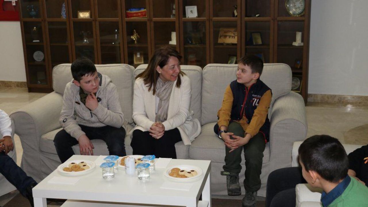 Yaşları sekiz ila on altı arasında değişen çocuklarla önce Bilim, Kültür ve Sanat Merkezi’ni gezen Günay daha sonra çocuklar ile çay içerek sohbet etti.