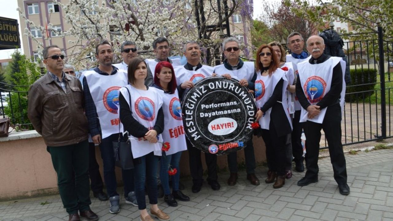 Eğitim İş Şube Başkanı Abdülkadir Önder, öğretmenlik mesleğinin itibarsızlaştırılmasına karşı durmak için böyle bir eylem gerçekleştirdiklerini söyledi. Türkiye’de eğitimde yaşanan sorunların nedeninin öğretmen performansları olmadığını ifade eden Önder,‘‘ Zaten eğitimin temeli olan öğretmenlere değer vermeyen bir anlayışın, başarılı ve çağdaş bir eğitim sistemi getirme ihtimali yoktur. Performans sistemi kaldırılıncaya kadar devam ettireceğimiz eylemlerimize, bu haklı, meşru ve demokratik başkaldırımıza tüm öğretmenlerimizi destek vermeye çağırıyoruz’’ diye konuştu. MEB’in eğitimcilerden önce kendi performansını değerlendirmesini isteyen Önder,‘‘ Ülkemizde eğitimin piyasacılaştırıldığı, başarı oranının giderek düştüğü, müfredat ve sınav sistemlerinin yapboza döndüğü, eğitim kalitesinin geriye gittiği gün gibi açıktır. Bizim böylesi bir Milli Eğitim Bakanlığı’na vereceğimiz performans notu sıfırdır!’’ ifadelerini kullandı.
