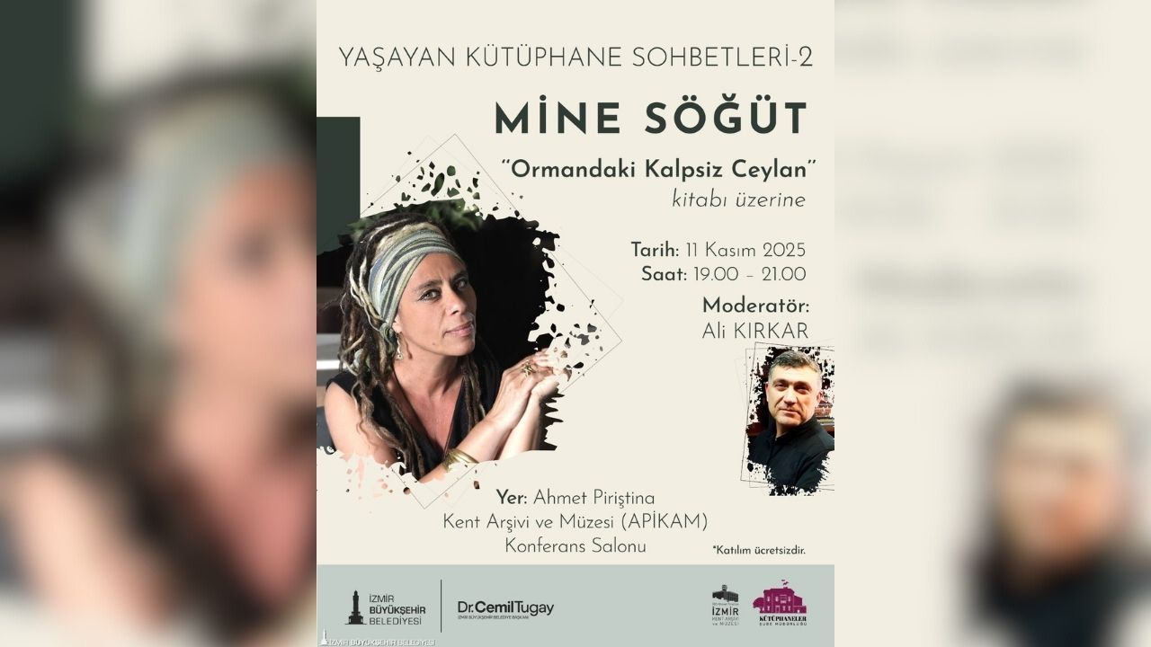 Çağdaş edebiyatın özgün sesi, derin anlatımı ve düşünsel dünyasıyla öne çıkan yazar Mine Söğüt, İzmir Büyükşehir Belediyesi Kültür, Sanat ve Sosyal İşler Dairesi Başkanlığı tarafından düzenlenen Yaşayan Kütüphane Sohbetleri’nin konuğu oluyor. 11 Kasım Salı 19.00’da Ahmet Piriştina Kent Arşivi ve Müzesi (APİKAM) Konferans Salonu’nda katılımcılarla bir araya gelecek Söğüt, “Ormandaki Kalpsiz Ceylan” adlı kitabı üzerine sohbet edecek. Etkinliğin moderatörlüğünü, yazar ve eğitmen Ali Kırkar üstlenecek.