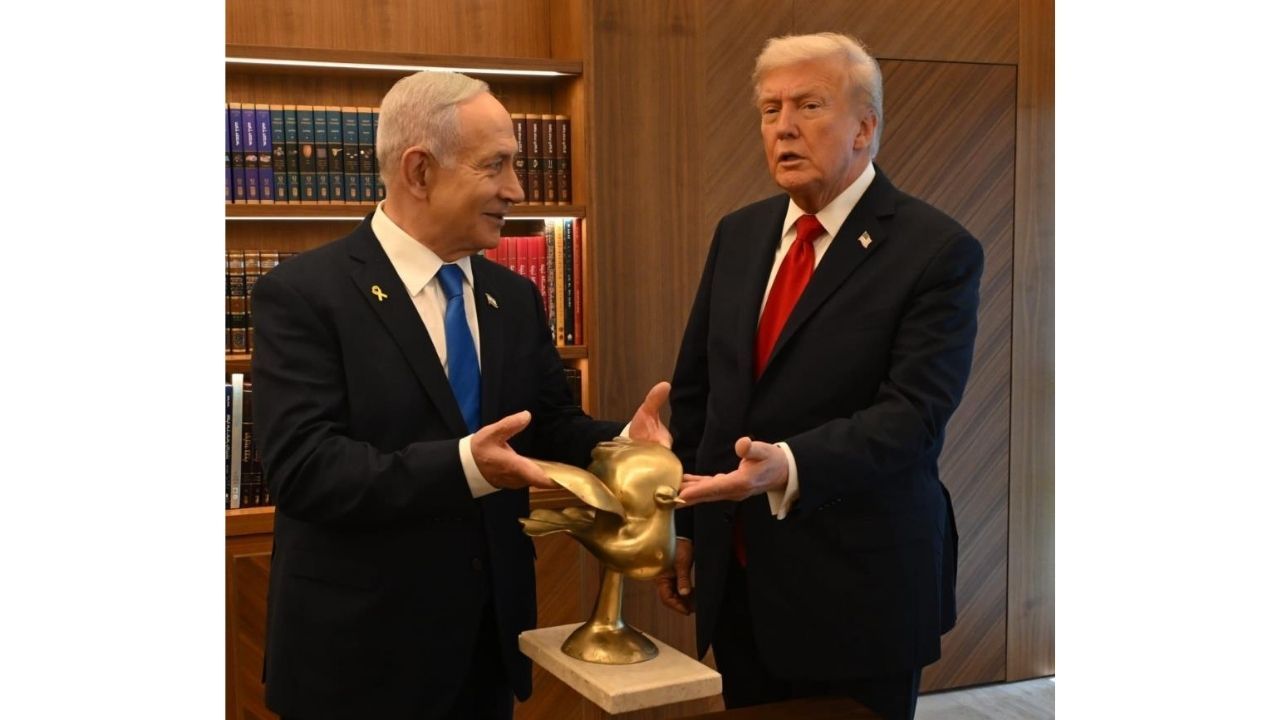 İsrail Başbakanı Binyamin Netanyahu, ABD Başkanı Donald Trump'a Altın Güvercin hediye etti.