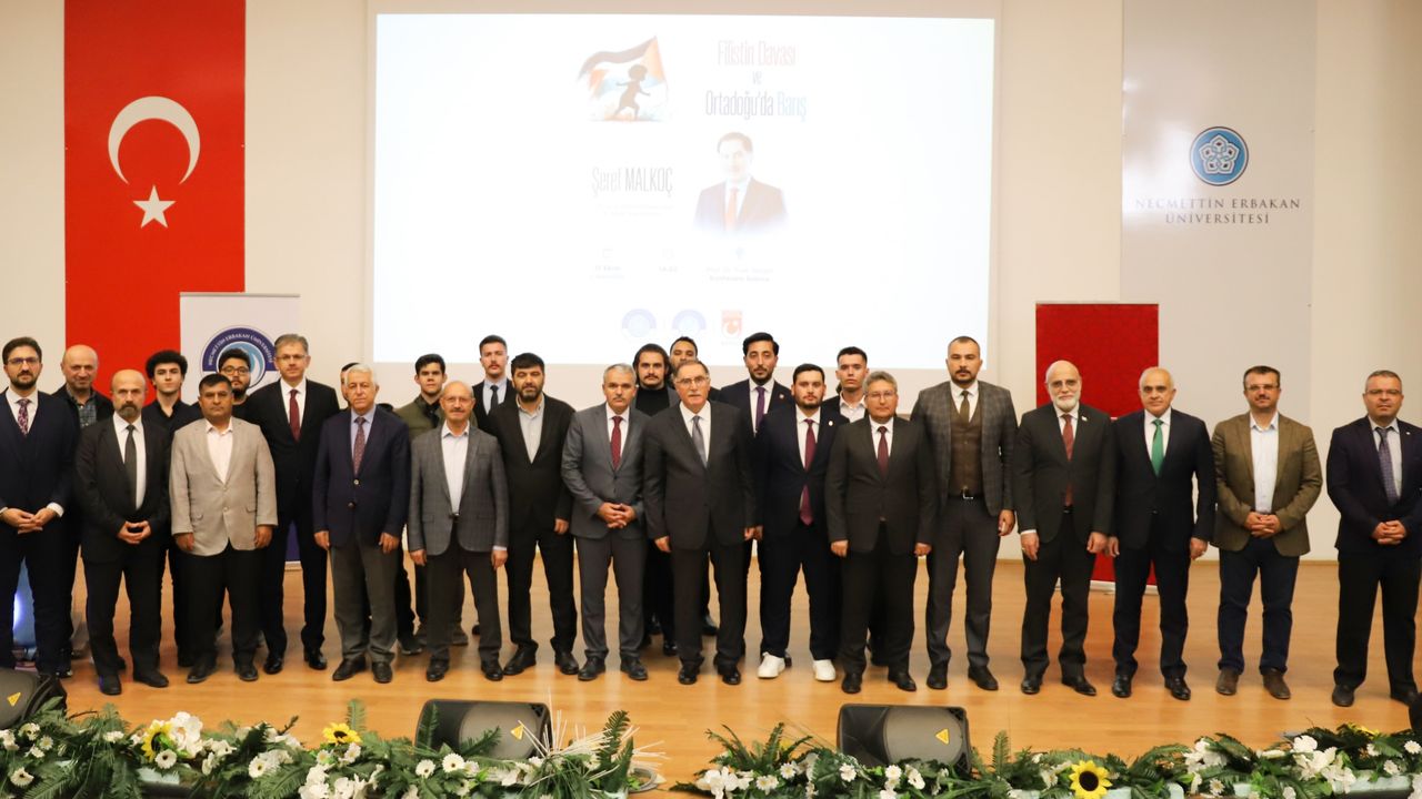 Necmettin Erbakan Üniversitesi (NEÜ) Milli Vizyon Topluluğu ve Milli Türk Talebe Birliği Konya İl Başkanlığı tarafından, 20 ve 21'inci Dönem Milletvekili ve eski dönem Kamu Başdenetçisi Şeref Malkoç'un konuşmacı olarak katıldığı "Filistin Davası ve Orta Doğu Barışı" konulu konferans gerçekleştirildi.
