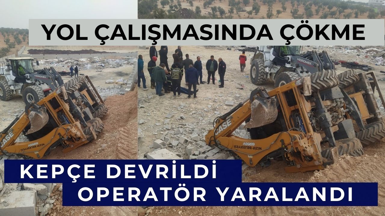 Gaziantep’in Nizip ilçesinde yol yapım çalışması sırasında zeminin çökmesi sonucu belediyeye ait kepçe devrildi, kepçe operatörü yaralandı.