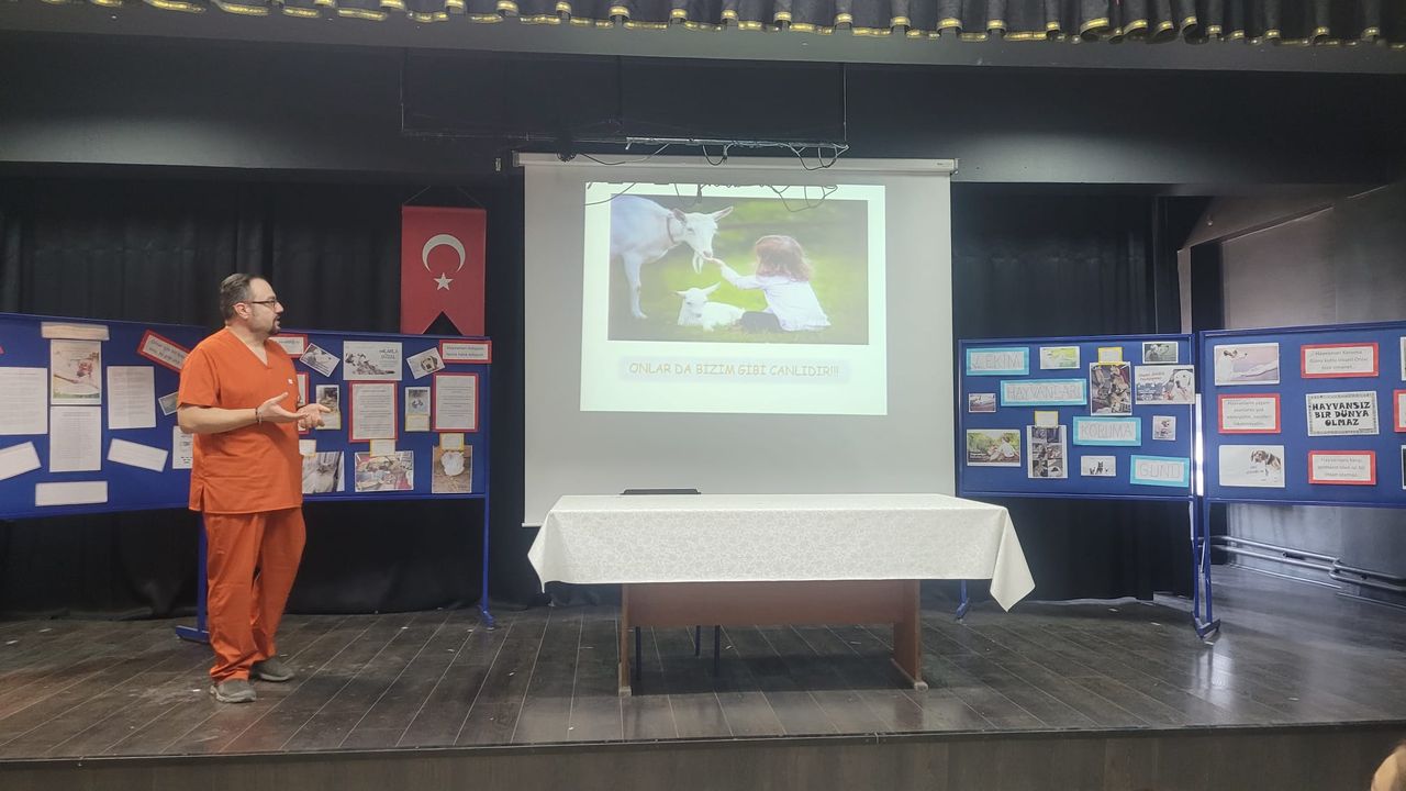 Veteriner hekimin sunumundan sonra, Okul Müdürü Oktay Turinay ‘’Bu etkinlikte doğanın ve yaşamımızın bir parçası olan hayvan dostlarımıza karşı sevgi ve şefkat göstererek onları korumamız önemlidir. Onları ihmal etmememiz gerekir ve sokakta yaşayan hayvan dostlarımız için herkesin evinin önüne bir kap su ve yiyecek koyarak onların yaşamlarını kolaylaştırmamız gerekir. En başta bizleri kırmayarak okulumuza gelen ve öğrencilerimizi aydınlatan veteriner hekimimize, Eskişehir Bilecik Veteriner Hekimler Odası’na ve etkinliğin planlanması ve hazırlanmasında emeği geçen öğretmen öğrenci ve idareci arkadaşlarıma teşekkür ediyorum’’ dedi