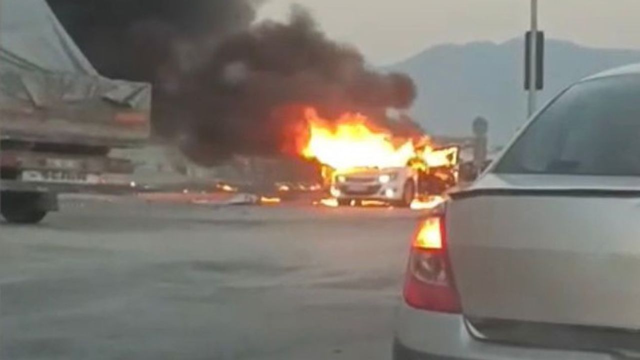 Osmaniye’de ışıklı kavşakta bekleyen bir otomobilde yangın çıktı. Alev topuna dönen araç itfaiyenin müdahalesiyle söndürülürken, şans eseri yaralanan olmadı.