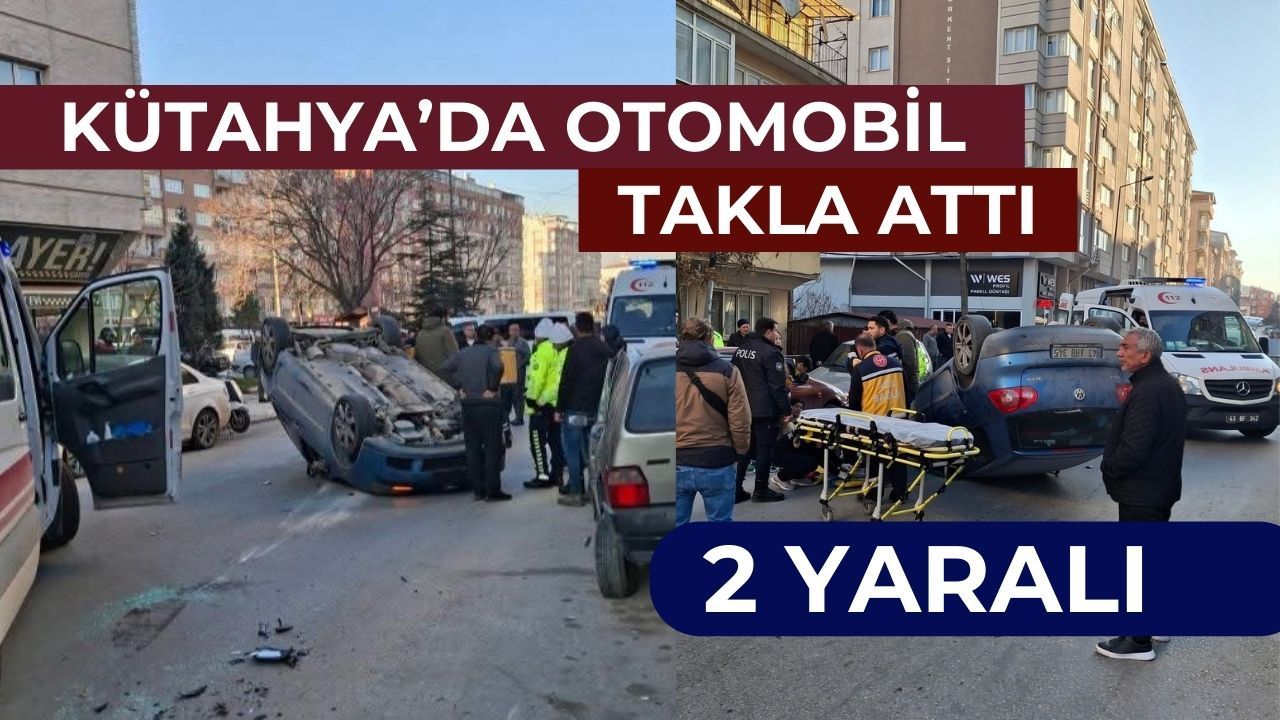 Kütahya’da sürücüsünün kontrolünden çıkan bir otomobilin park halindeki araçlara çarptıktan sonra takla atması sonucu meydana gelen trafik kazasında 2 kişi yaralandı.