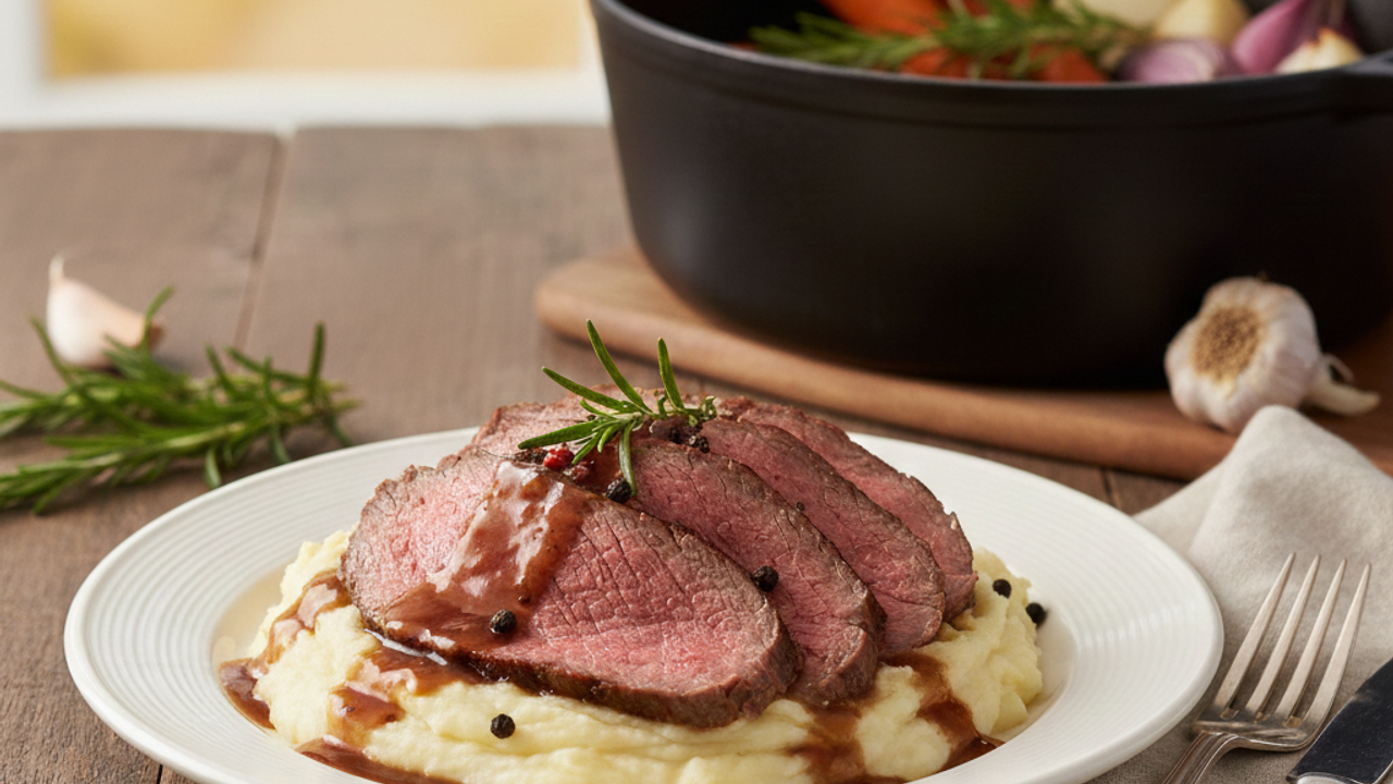 Sos Hazırlama: Etin piştiği tenceredeki sebzeli suyu süzgeçten geçirin. Sebzeleri isterseniz ayırabilirsiniz. Süzdüğünüz suyu küçük bir sos tenceresine alın ve kıvam alana kadar kaynatın. Gerekirse bir miktar tuz ve karabiber ekleyin. Bu sosu, dilimlediğiniz etin üzerine gezdirebilirsiniz.