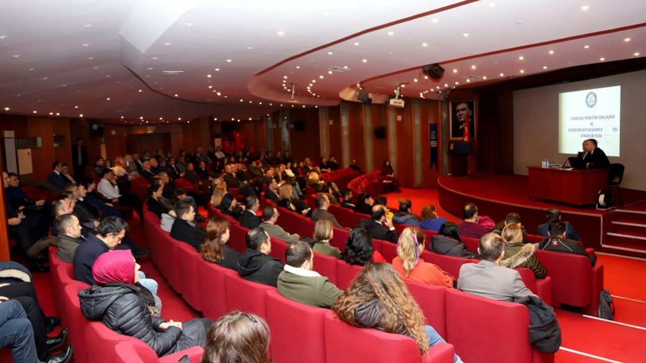 Çevrenin korunması ve iklim değişikliğiyle mücadele edilmesi, kentsel ulaşımda sürdürülebilirliğin sağlanması, yerleşme kalitesinin arttırılması ve kentsel dönüşümün gerçekleştirilmesi, tarım ve hayvancılığın desteklenmesi, turizmin geliştirilmesi, güven ve huzurun korunması, eğitim, kültür ve sanatın günlük yaşantının bir parçası haline getirilmesi ve kurumsal kapasitenin arttırılmasına yönelik sekiz ayrı başlık üzerine inşa edilen 2020-2024 Stratejik Plan hakkında belediye personelleri bilgilendiriliyor. Taşbaşı Kültür Merkezi’nde Kırmızı Salon’da başlayan eğitimlerde Büyükşehir Belediyesi hayata geçirmeyi planladığı yatırımlar ve hizmetlere yönelik belirlediği yol haritası personellere aktarıldı. (Onur Şentürk)