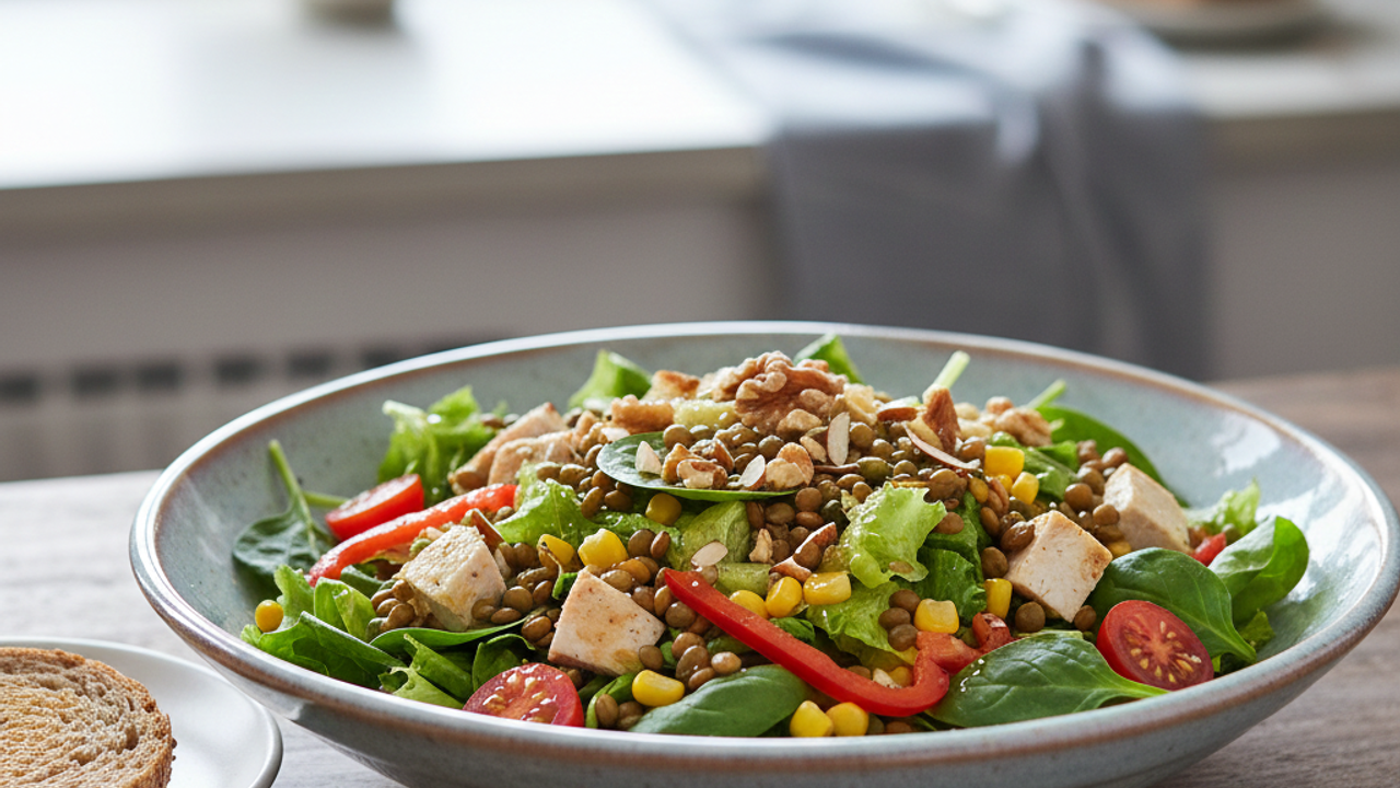 Bu salata, öğle veya hafif akşam yemekleri için mükemmel bir alternatiftir. Yüksek lif ve protein içeriği sayesinde uzun süre tok tutar.