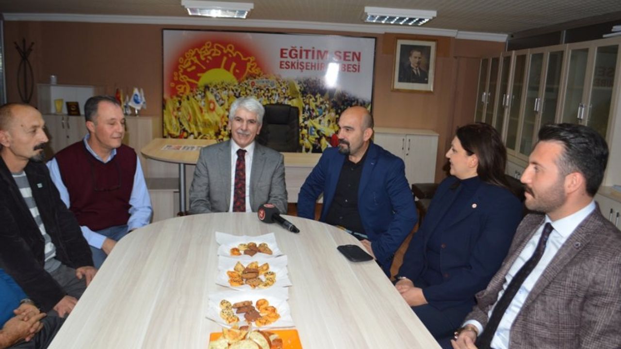 Ziyarette KESK’e bağlı şubelerin temsilcileri hazır bulundu. Eğitim Sen Şube Başkanı Faik Alkan, Sakallı’ya hoş geldin diyerek söze başladı. Sorunlara taraf olan bir federasyon olduklarına dikkat çeken Alkan,‘‘ Sendika siyaset ilişkisini de açıkçası emekçilerin ve halkın çıkarları üzerine kuruyoruz. Doğru bildiğimiz şeyleri her ortamda dile getiriyoruz. Yerel yönetimlerde en çok üzerinde durduğumuz şey katılımcı, demokratik ve aynı zamanda hesap verebilir bir belediyecilik anlayışı KESK’in olmazsa olmazı’’ diye konuştu. Başkan Sakallı’da misafirperverliklerinden dolayı KESK’e teşekkür ederek,‘‘ Sayın Başkanın altını çizdiği emek ve demokrasi ile ilgili hassasiyetlerini tümüyle paylaşıyorum. Yerel yönetimlerde belediyeler söz konusu olduğunda katılımcılık, demokrasi, demokratik yönetim, hesap verebilir yönetim ve bunlara şeffaflığı da ekleyelim benim de yerel yönetimden, daha doğrusu belediye başkanlığından anladığım şeylerdir. Mutlaka farklı düşündüğümüz yerler olacaktır ancak ortak kaygılarımızda olacaktır. Tekrar kendilerine teşekkür ediyorum’’ ifadelerini kullandı.