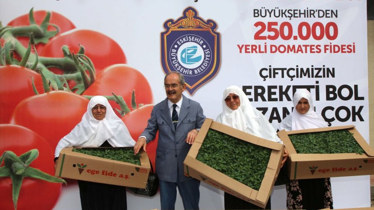 Daha önce ipek böcekçiliğini tekrar canlandırmak için dut fidanı dağıtan Büyükşehir Belediyesi, üretime katkı sağlamak amacıyla şimdi de 250 bin domates fidesini Başkan Büyükerşen’in katıldığı törenle çiftçilere dağıttı.