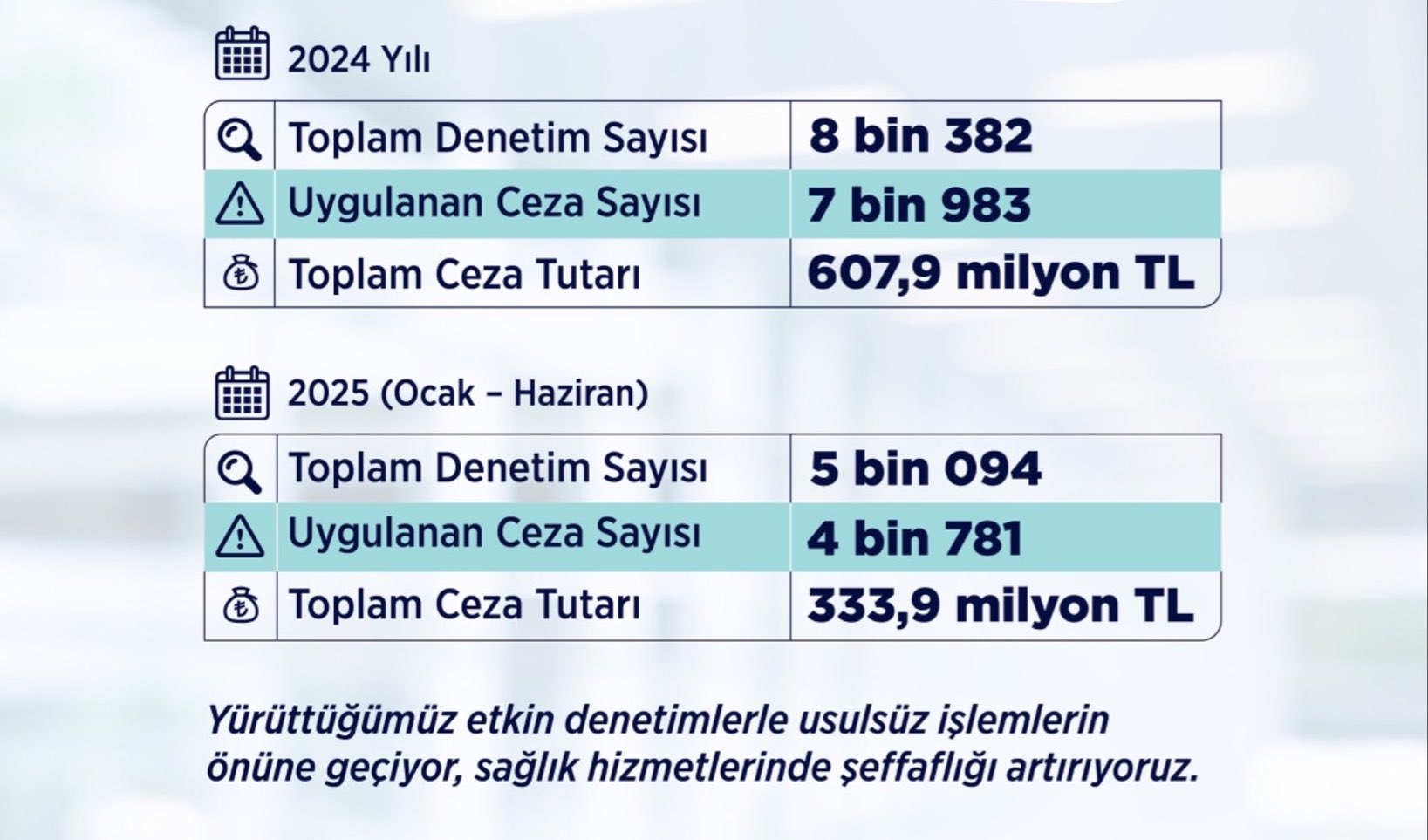 “Vatandaşlarımızın hak ettiği sağlık hizmetini eksiksiz alabilmesi için tüm özel sağlık kuruluşlarını titizlikle denetliyoruz. Kurallar dışına çıkan hiçbir kuruma müsamaha gösterilmeyecektir.”