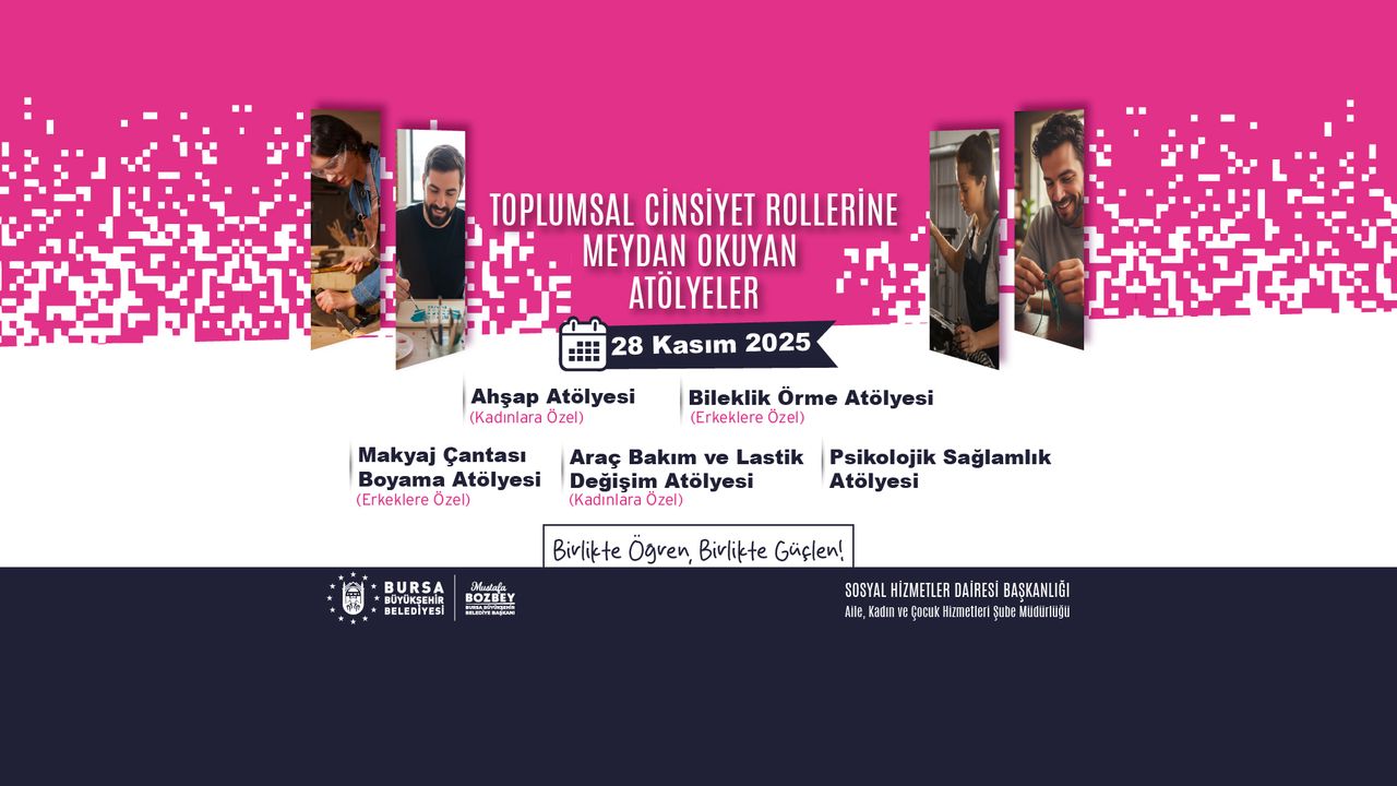 Bursa Büyükşehir Belediyesi Sosyal Hizmetler Dairesi Başkanlığı Aile, Kadın ve Çocuk Hizmetleri Şube Müdürlüğü tarafından 25 Kasım Kadına Yönelik Şiddete Karşı Uluslararası Mücadele Günü kapsamında birçok eğitici atölye programı düzenleniyor.
