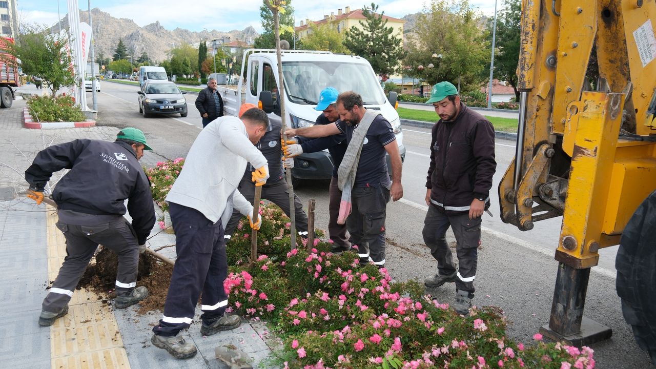 Ekipler, Atatürk Bulvarı üzerinde kuruyan ağaçları sökerek yerlerine yeni fidanlar dikti. Ayrıca yol boyu tüm yeşil alanlarda budama, bakım ve temizlik çalışmaları da aralıksız devam ediyor.