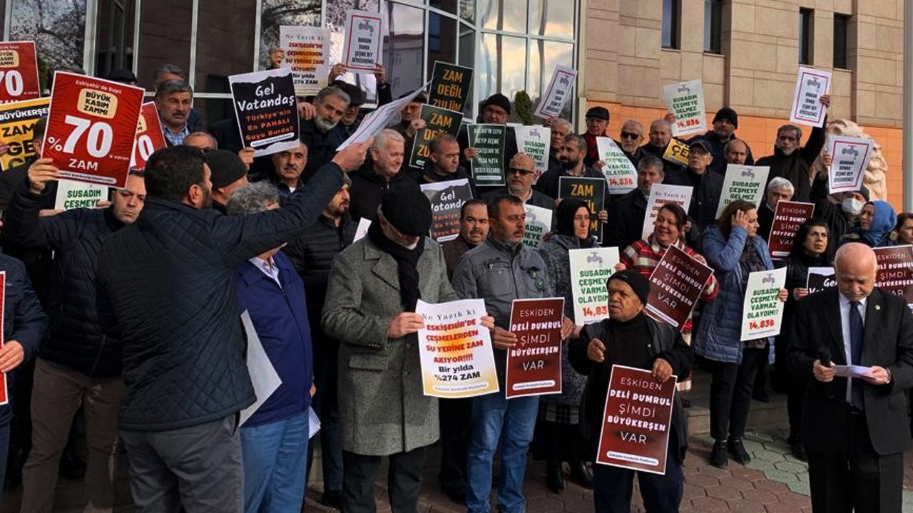 Eskişehir'de şebeke suyu fiyatının yüzde 70 artırılması kararının ardından sivil toplum kuruluşları ve vatandaşlar, Büyükşehir Belediyesi binası önünde bir araya gelerek yapılan zamma isyan etti. AK Parti Eskişehir İl Başkanı Zihni Çalışkan, gerçekleştirilen protestoya katılarak destek verdi. Vatandaşlar, ‘Zam değil zülüm’, 'Büyükerşen zammı geri çek’, 'Eskişehir’de çeşmelerden zam akıyor’ şeklinde sloganlar attılar.