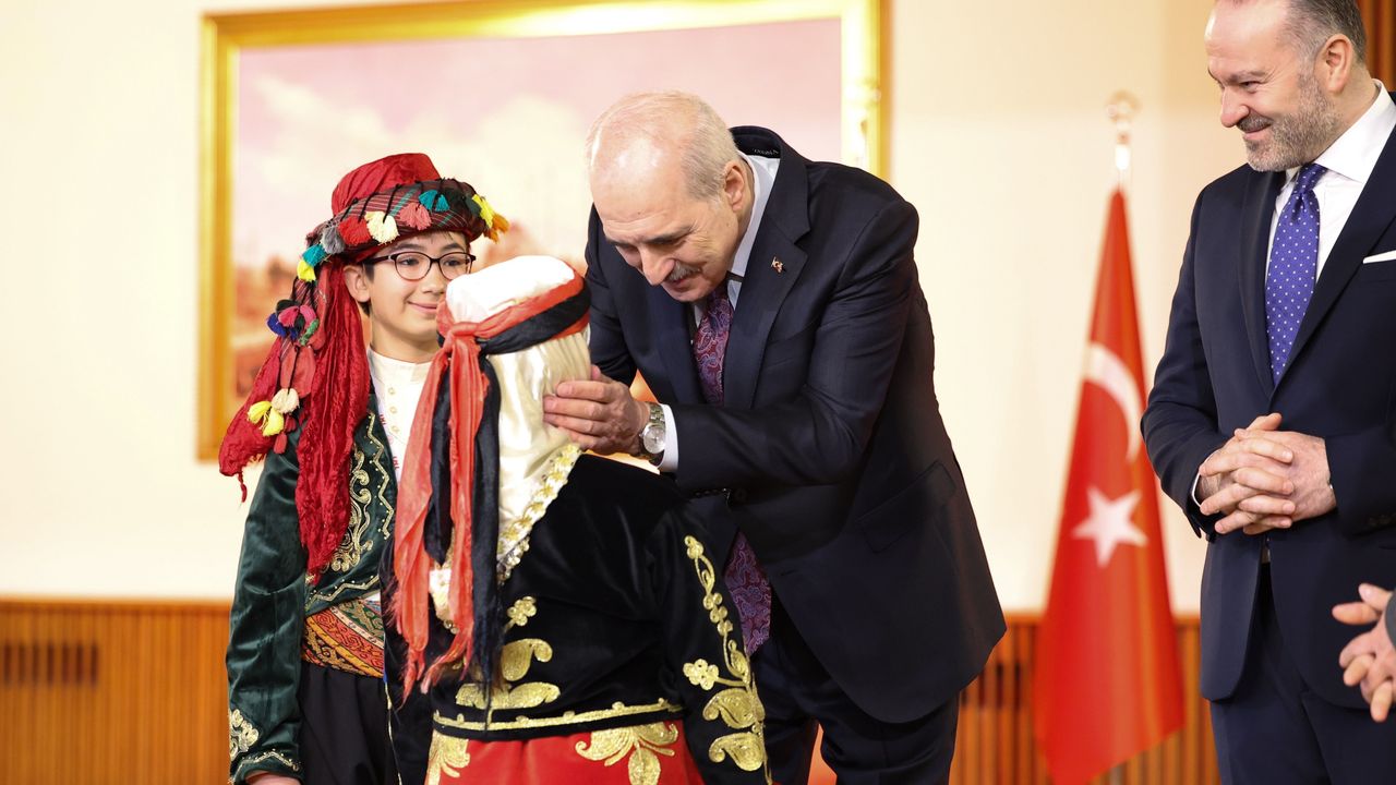 TBMM Başkanı Numan Kurtulmuş, 23 Nisan Ulusal Egemenlik ve Çocuk Bayramı etkinlikleri çerçevesinde, 26 farklı ülkeden Türkiye'ye gelen 52 çocuğu Meclis Tören Salonu’nda ağırlayarak dünya gündemine dair önemli mesajlar verdi.