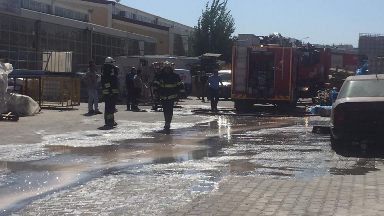 Teksan Sanayi Bölgesi’nde bir işyerinde yangın çıktı. İhbar üzerine olay yerine gelen itfaiye ekipleri yangını söndürmeye çalışıyor.