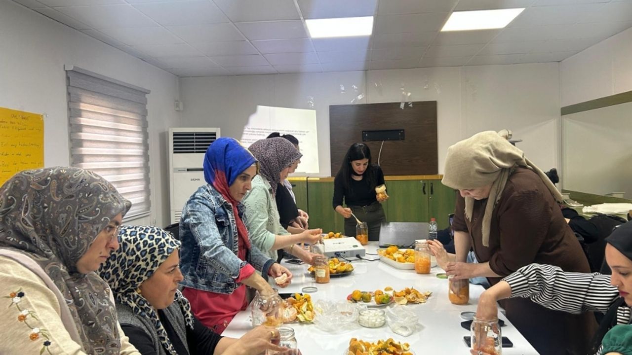 Atölyenin uygulama bölümünde ise katılımcılarla birlikte zerdeçallı mandalina sirkesi hazırlandı. Kadınlar atölyede, hem sirke yapımının inceliklerini öğrendi hem de kendi sirkelerini üretti.
