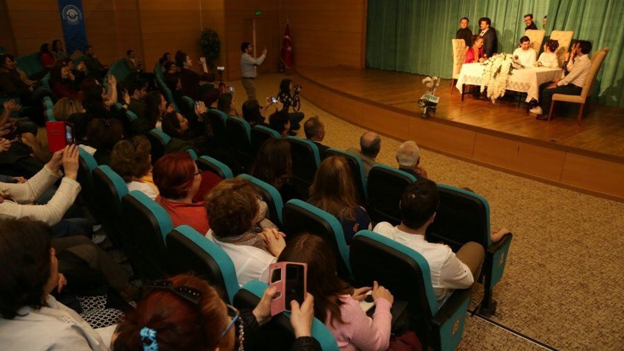 Hasan Polatkan Kültür Merkezi sahnesinde kıyılan nikaha Tüysüz ve Tosun ailesinin yanı sıra çok sayıda tiyatro oyuncusu katıldı. Davetlilerin çoğu tiyatro oyuncusu olunca da nikah çeşitli gösterilere sahne oldu. Nikah merasimi sırasında ‘7 Kocalı Hürmüz’ oyununda Hürmüz’ün kocaları rolünü oynayan Hüseyin Demir, Ahmet Kayaarası, Enes İşlek, Sezer Sarıbardak ve Çelik Er Seyhan ‘Nikahına Beni Çağır Sevgilim’ adlı şarkıyı söyleyerek sahneye çıktı. Kadın kılığına giren başka bir oyuncu ise sahneye çıkarak nikahı engellemek istedi. Ceren Tosun ve Alican Tüysüz’ün nikahı bu minik gösterilerin ardından kıyıldı.