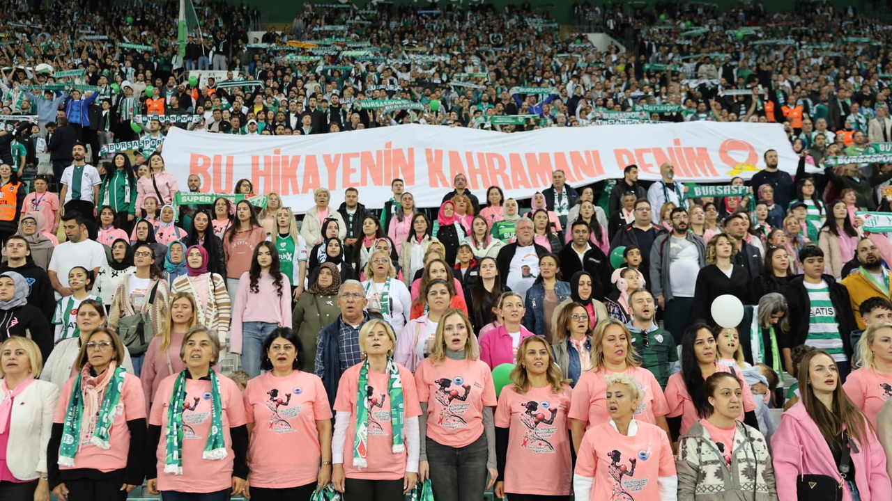 Bursa Büyükşehir Belediyesi’nin 1-31 Ekim Meme Kanseri Farkındalık ayı kapsamında, farkındalık oluşturmak amacıyla düzenlediği etkinliklerin bir yenisine Bursa Büyükşehir Belediye Başkanı Mustafa Bozbey’in eşi Seden Bozbey de katıldı. Bursa Büyükşehir Belediyesi'nin organizasyonuyla yaklaşık 100 kadın pembe tişörtleriyle Bursaspor Menemen Belediyespor maçını izleyerek farkındalık oluşturdu. Kadınlarla birlikte Bursaspor maçını tribünden izleyen Seden Bozbey, pembe kurdele takarak farkındalık mesajı verdi. Seden Bozbey, “Bursaspor Yeşilin İncileri Derneği ve Bursa Kanser Derneği işbirliği ile maçı kadınlarla birlikte izledik. Hem Bursaspor’u desteklemek hem de bu ayın farkındalığını artırmak amacıyla tribündeyiz" dedi.