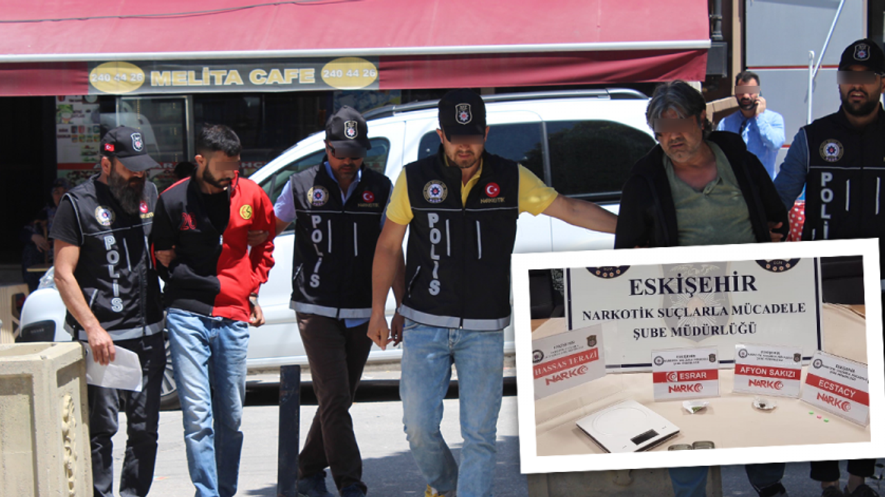 Eskişehir'de uyuşturucu ticareti yaptığı iddia edilen biri kadın 3 kişi adliyeye sevk edildi. Eskişehir Narkotik Suçlarla Mücadele Şube Müdürlüğü tarafından sokak satıcılarına yönelik yapılan çalışmada 7 şahıs yakalandı. Yakalanan şahısların üstlerinde ve ikametlerinde yapılan aramada 0.77 gram afyon sakızı, 0.68 gram esrar, 0.30 gram eroin, 1.82 gram bonzai, 3 adet extacy uyuşturucu hap, 1 adet hassas terazi ele geçirildi. 4 şüpheli şahsa 'Uyuşturucu Madde Kullanmak' suçundan, 3 şüpheli şahsa ise 'Uyuşturucu Madde Ticareti Yapmak' suçundan yasal işlem yapıldı. Emniyetteki işlemlerin ardından uyuşturucu ticareti yapan 3 şahıs adliyeye sevk edildi.