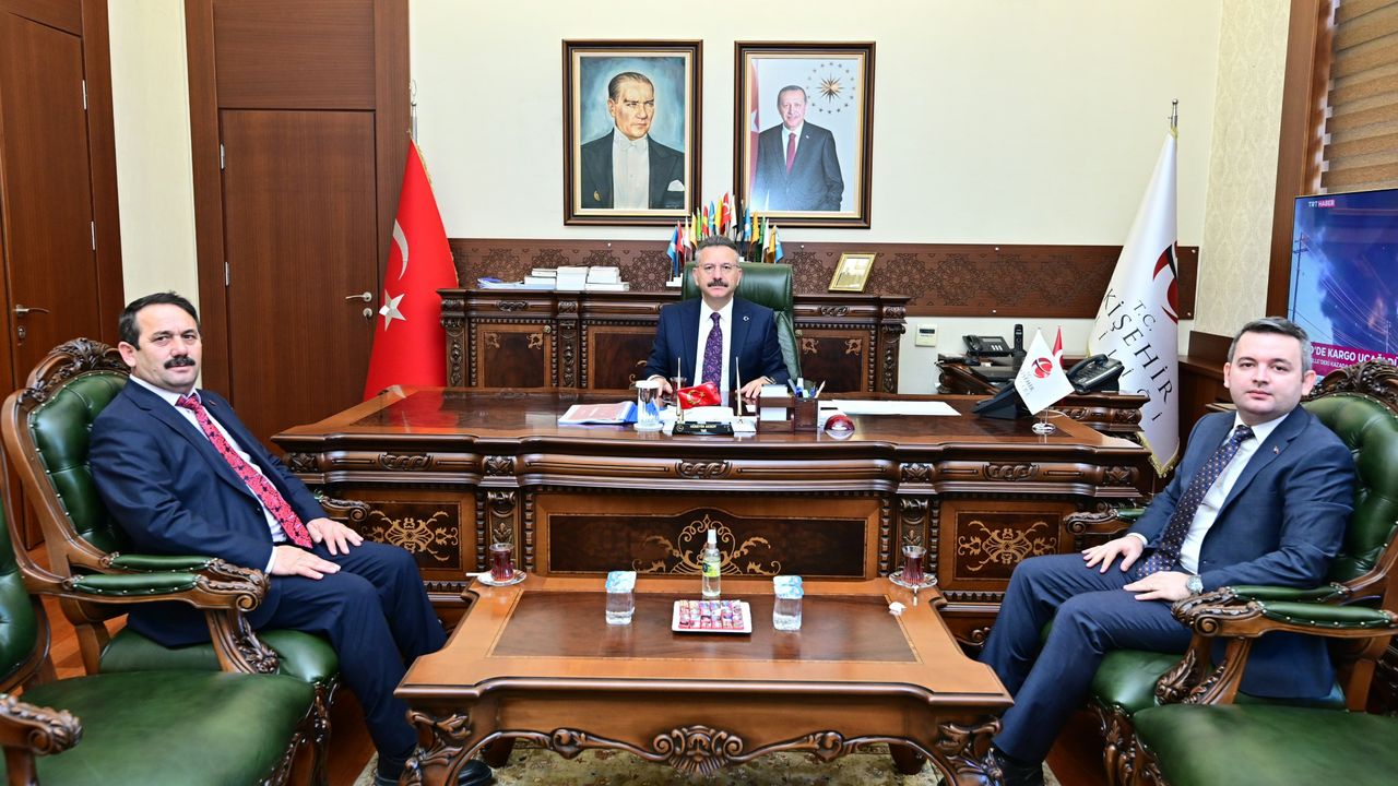 Eskişehir Valisi Hüseyin Aksoy, Günyüzü Kaymakamı Muhammed Raşit Kurt ve Günyüzü Belediye Başkanı Hidayet Özmen’i makamında ağırladı.