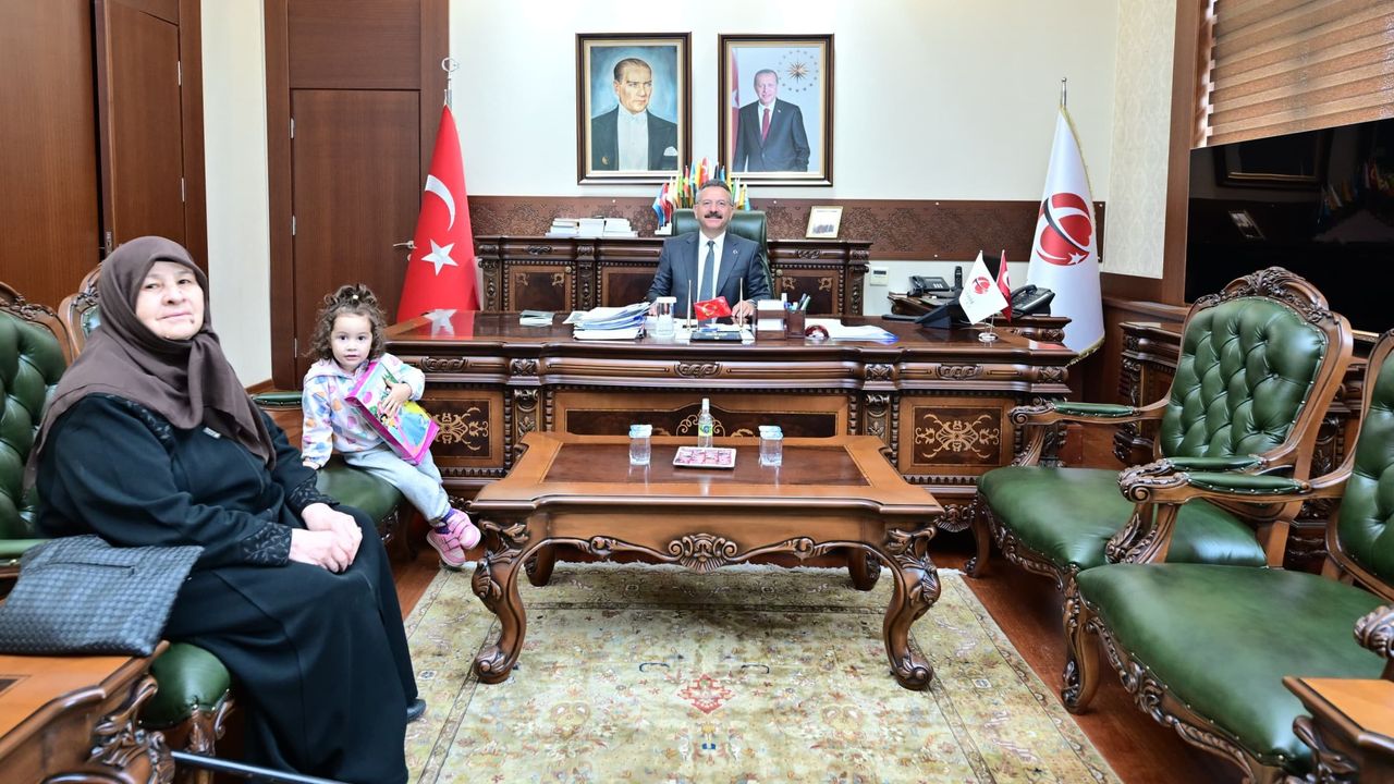 Şehit Jandarma Onbaşı Salim Gökhan Uzun’un annesi Kanimet Uzun ve torunu Ela Uzun, Vali Hüseyin Aksoy’u ziyaret etti.