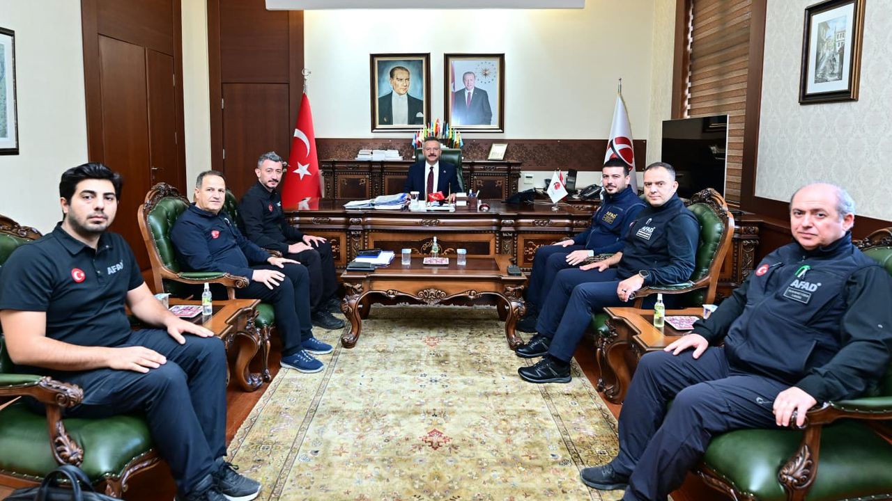Sarıcakaya Belediye Başkanı Ahmet Dönmez, Uşak Valisi Dr. Naci Aktaş ve AFAD heyeti, Vali Hüseyin Aksoy’u makamında ziyaret etti. Sarıcakaya Belediye Başkanı Ahmet Dönmez, Vali Hüseyin Aksoy’u ziyaret etti. Ziyarette ilçeye ilişkin çalışmalar hakkında görüş alışverişinde bulunuldu.