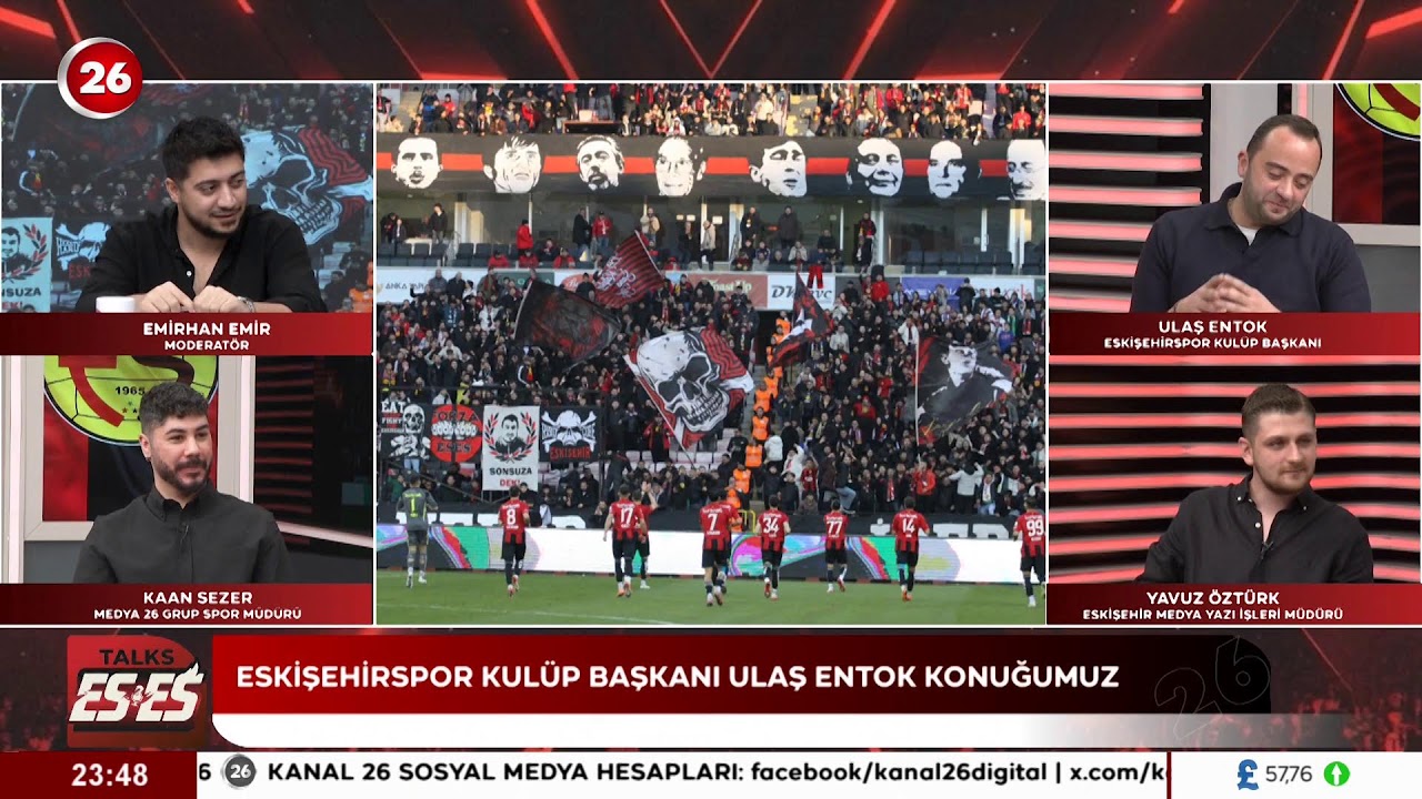 Eskişehirspor Kulüp Başkanı Ulaş Entok, KANAL 26'da yayınlanan "ESES TALKS" programının 3. bölümüne konuk oldu. Gündemdeki sıcak konulara dair önemli değerlendirmelerde bulunan...
