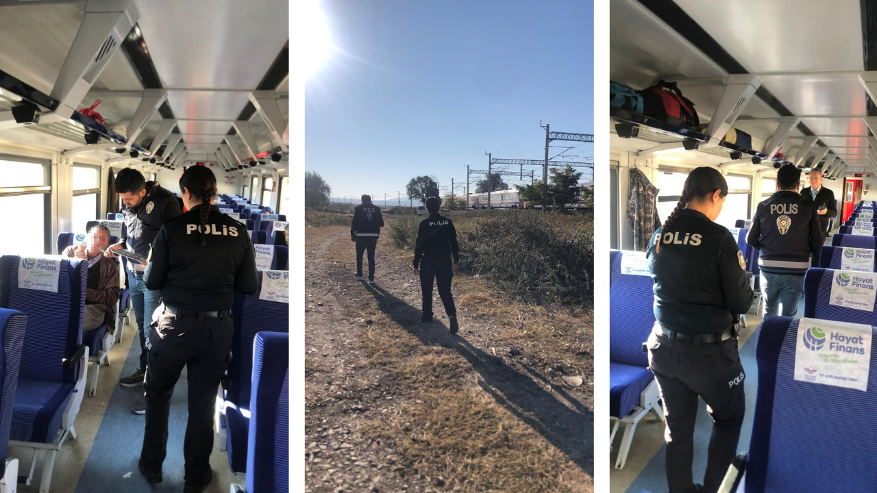 Yozgat'ın Yerköy ilçesinde polis ekipleri, vatandaşların tren seyahatlerini huzurlu ve güvenli bir şekilde gerçekleştirmelerini sağlamak amacıyla trenlerde uygulama gerçekleştirdi.