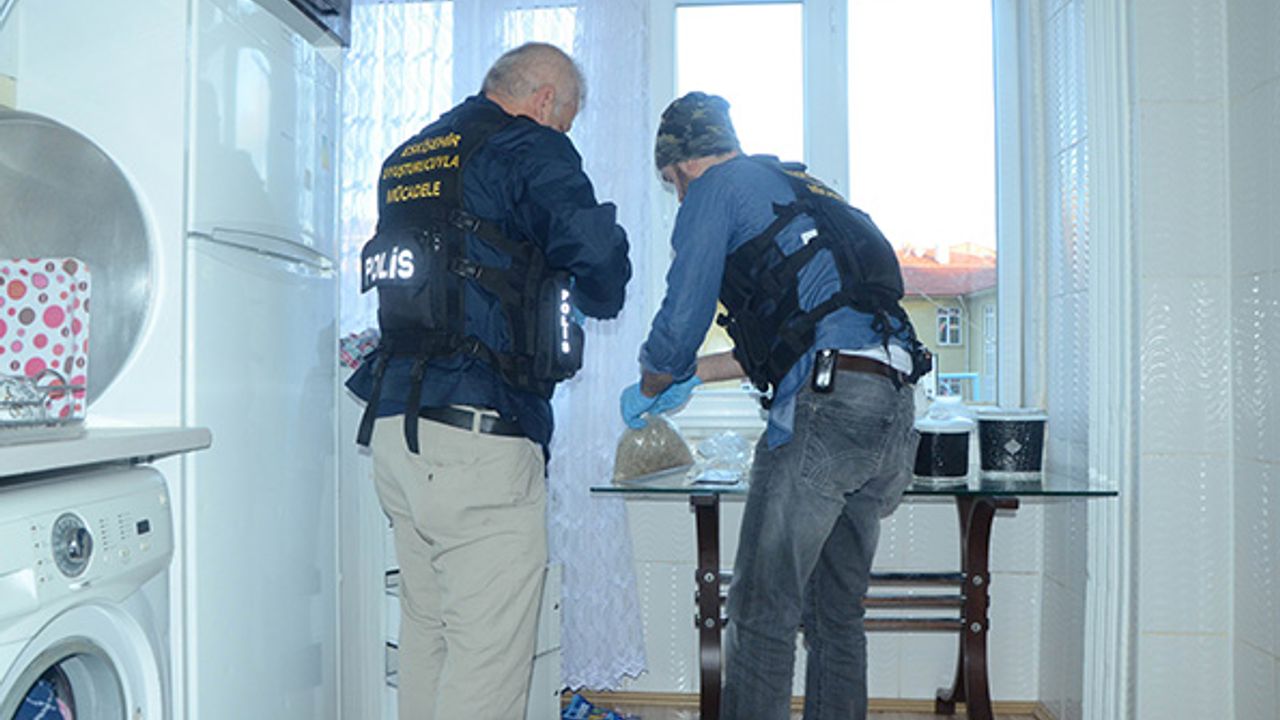 Türkiye genelinde zehir tacirlerine yönelik düzenlenen operasyonlar kapsamında, Eskişehir’de 10 farklı adrese şafak baskını gerçekleştirildi. Çok sayıda şüpheli gözaltına alınırken, fazla miktarda uyuşturucu maddenin ele geçirildiği öğrenildi.Türkiye genelinde, Narkotik Şube Müdürlüğü ekipleri tarafından uyuşturucu satıcılarına yönelik şafak operasyonu düzenlendi. Eskişehir’de daha önce belirlenen 10 farklı adrese polis ekipleri baskın yaptı. Narkotik Şube Müdürlüğünün yanı sıra operasyona, Asay